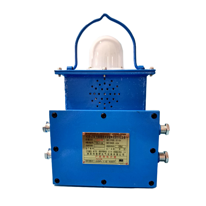 1用途及適用范圍: KXB127礦用隔爆兼本安型聲光語言報(bào)警器(簡稱報(bào)警器)適用于煤礦井下有瓦斯及煤塵爆炸危險(xiǎn)的各軌道偏口及上下車廠等地,通過配接車流傳感器、風(fēng)門開閉狀態(tài)傳感器(均已取得安全標(biāo)志)可實(shí)現(xiàn)當(dāng)機(jī)車運(yùn)行到需要報(bào)警的地方時(shí)如:彎道、道岔處及風(fēng)門開閉等,通過信號(hào)燈指示及語言報(bào)警實(shí)現(xiàn)提高煤礦安全的目的。